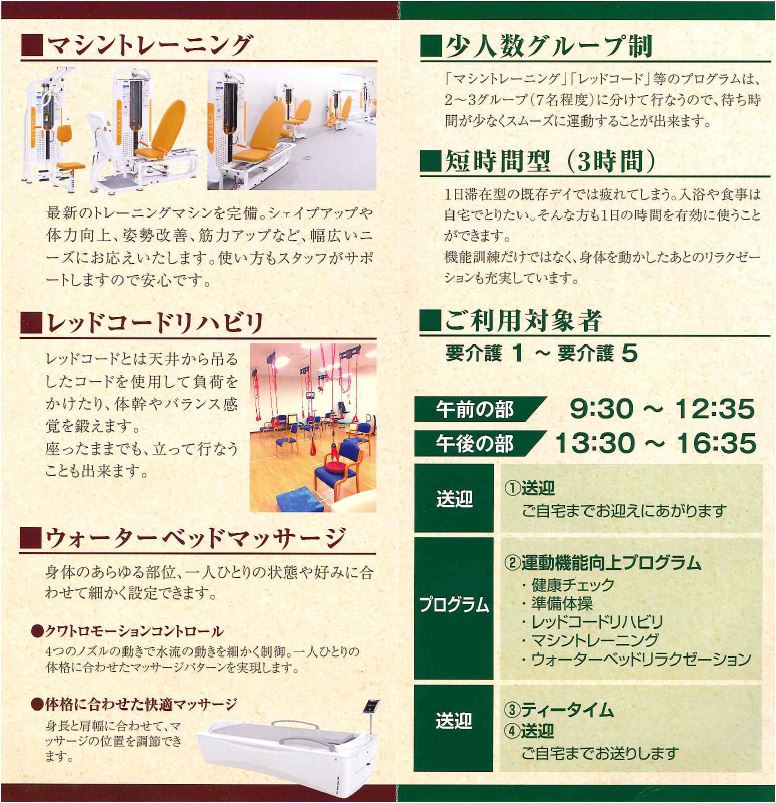 『笑顔満開なかおちあい』をキャッチフレーズに、ご利用者はもちろん、職員も笑顔ですごせる施設作りを心がけています。エリア随一の広いスペースを活用し、施設内を移動するだけでも運動になります。体操だけではなく、脳トレや趣味活動など豊富なプログラム ... |